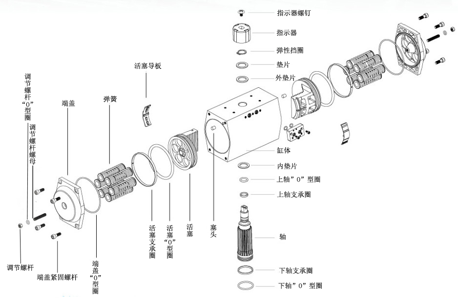 4、缸体、端盖、输出轴、弹簧、紧固件等均经防腐处理。